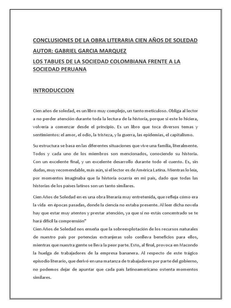 Analisis Cien Anos De Soledad Pdf Gabriel Garcia Marquez